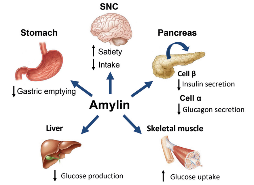 L’amylina è un ormone che il nostro corpo rilascia durante i pasti per comunicare al cervello: “Il cibo sta arrivando — rallenta la digestione e riduci la fame.” Il GLP-1, al contrario, è più un segnale “post-pasto” — aiuta a controllare la glicemia, rallenta lo svuotamento gastrico e riduce l’appetito, ma attraverso un percorso separato. Combinare i due significa che il corpo riceve simultaneamente due potenti segnali di sazietà — questo è il principio alla base dell’associazione tra Cagrilintide e semaglutide.